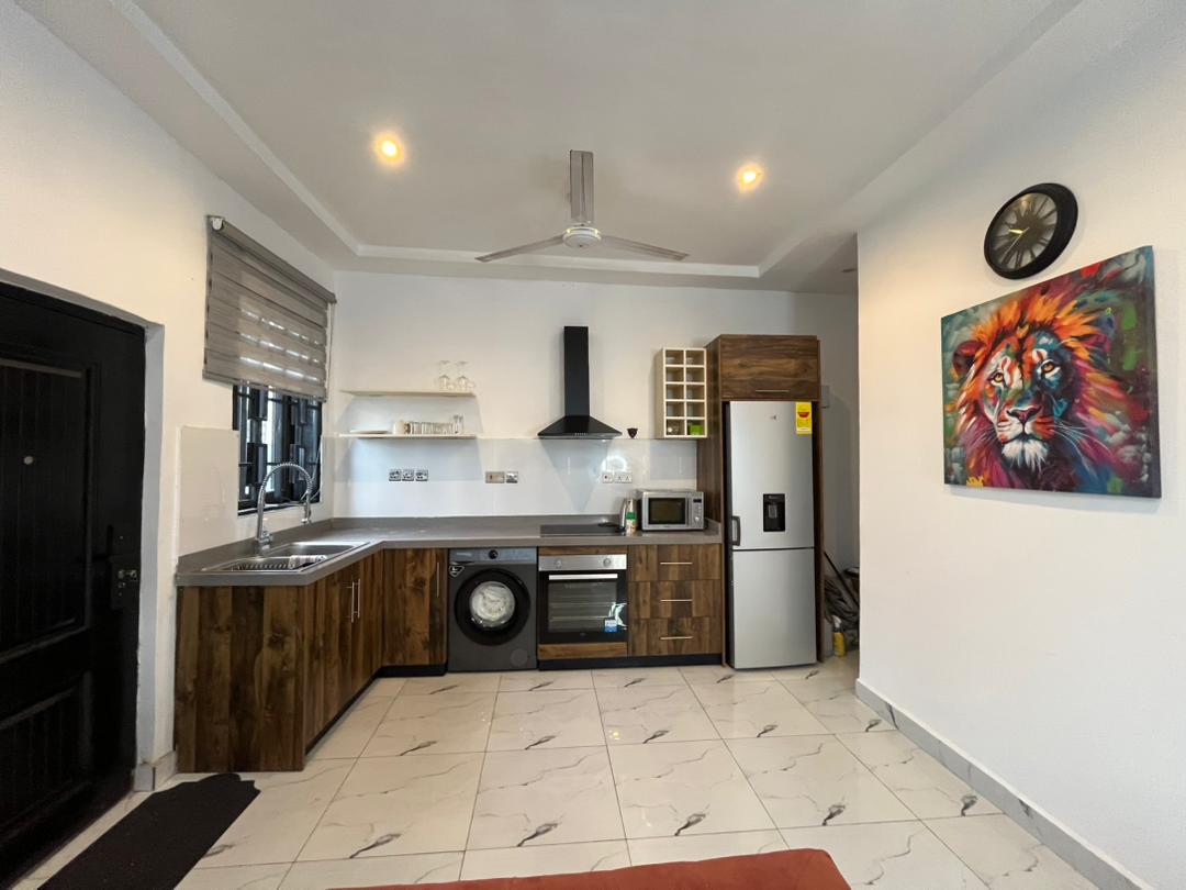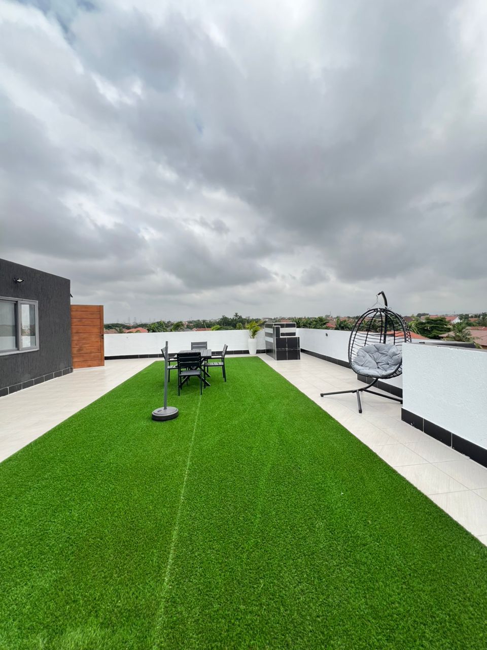 Enjoy a warm stay at this spacious one-bed apartment in East Legon, Trassaco, Accra. It’s perfect for those seeking a moderate place to stay without breaking the bank. The area is quite central, with retail stores and restaurants. It features a standby generator and a rooftop space that can be used for hosting large gatherings or enjoying fresh air while reading. Call for your booking.